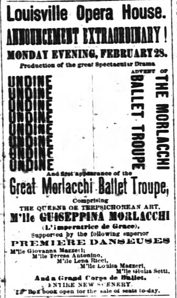 Two years before she met and fell in love with Texas Jack, Giuseppina Morlacchi was enchanting the nation with her ballet skills. This review is from the February 26, 1870 edition of the Louisville, Kentucky, Courier-Journal: