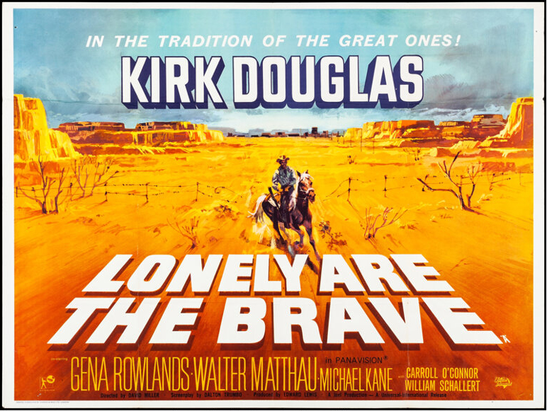 Any time he was asked about his long and varied career, Kirk Douglas pointed to Lonely Are The brave as his favorite role. "It happens to be a point of view I love," said Douglas. "This is what attracted me to the story – the difficulty of being an individual today." This movie was the first modern western—a movie that subverted expectations and questioned rather than glorified civilization's expanse into the West. Douglas did not want to star in the film, which shot under the working title The Last Hero. "I’m doing a picture that should have been done by only one guy. I know it—my entire company knows it. Start with the title — The Last Hero. Now whom does that fit—me? Hell, no!" Douglas wrote to his friend and fellow actor Gary Cooper. The film's director, Douglas wrote, had told him to "try and play this the way Gary Cooper would."
