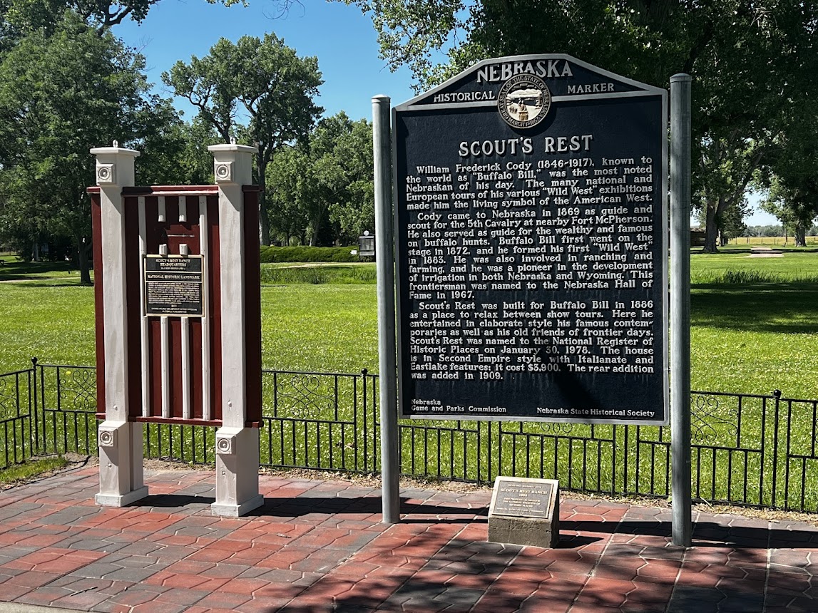 Scout's Rest, the North Platte, Nebraska home of Buffalo Bill Cody. Just over 8 acres of Cody’s former ranch property in North Platte—including the mansion, barn, outbuildings, irrigation system, windmill, and landscaped lawns—earned the designation of National Historic Landmark on January 13, 2021.