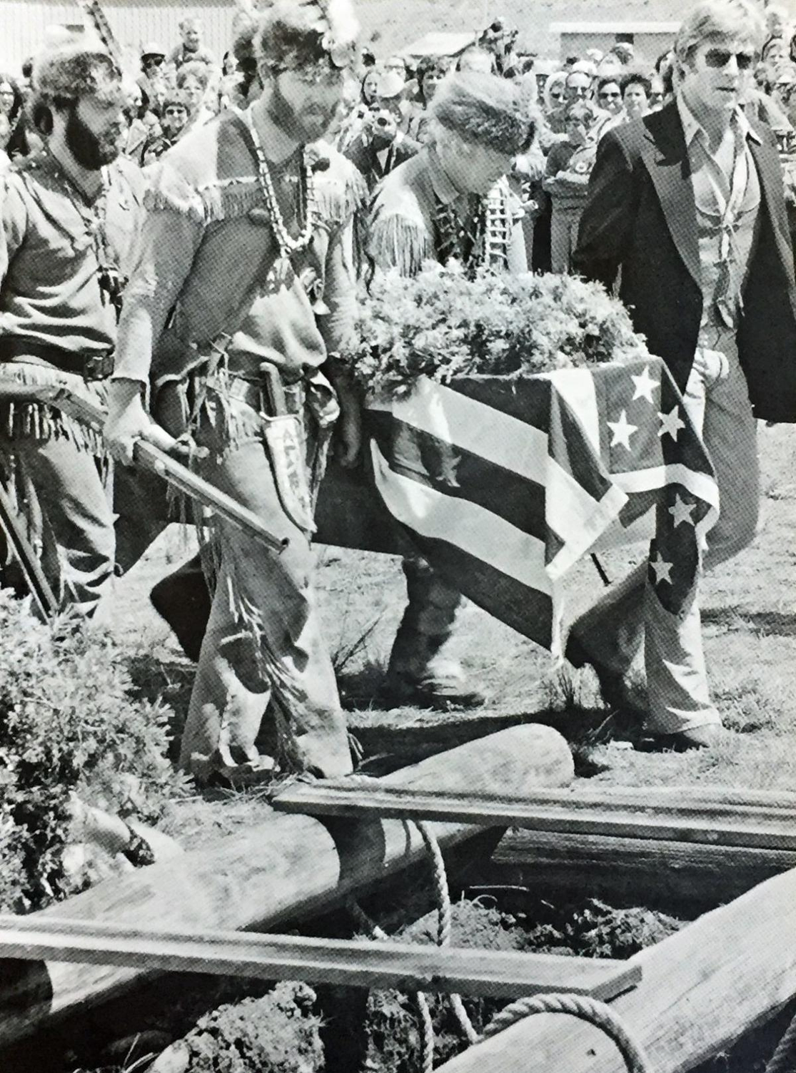 On June 8, 1974, more than 1,200 spectators gathered as the coffin arrived. Among them was Robert Redford, who shouldered the casket alongside locals and dignitaries. The movie star who had embodied the myth now literally carried the man who had inspired it.