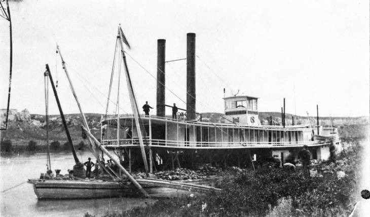 "We had given up all idea of meeting with Indians, and I had gone on shore in pursuit of a deer which I saw on the north bank, when suddenly I heard firing, and rushing to the bank of the river, I saw some Indians firing on the steamboat Yellowstone, which was some half mile behind us. The Indian fire killed one man, named Dennis Shields, belonging to the Sixth regiment of infantry. At this time our boat was taking in wood. I immediately went aboard the Josephine and reported what I had seen. In a few minutes the Yellowstone came alongside. Just then the Indians appeared on the opposite bluff, and fire was opened on them from both boats. They disappeared almost immediately and no further loss was suffered on either boat, but there was quite an excitement on board the boats."