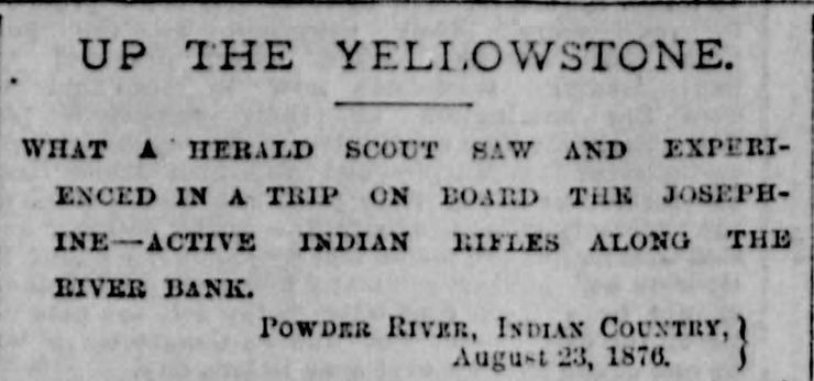 The following account by Texas Jack appeared in the Sunday issue of the New York Herald newspaper on September 17, 1876. Texas Jack was accompanying one of the Herald's correspondents to join General Alfred Terry in pursuit of Tȟatȟáŋka Íyotake (Sitting Bull), Tȟašúŋke Witkó (Crazy Horse), and the various bands of Očhéthi Šakówiŋ (Sioux) after the Battle of Little Bighorn / Greasy Grass.